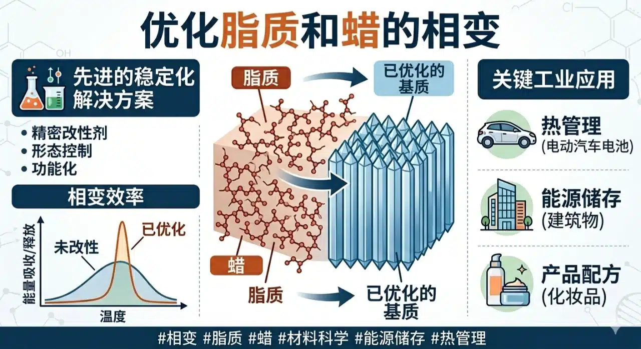 添加脂类改良剂(如硬脂酸或鲸蜡醇)可用于调节粘度和最终的晶体结构。例如,添加10%w/w的特定液态脂类已被证明能加速从亚稳态